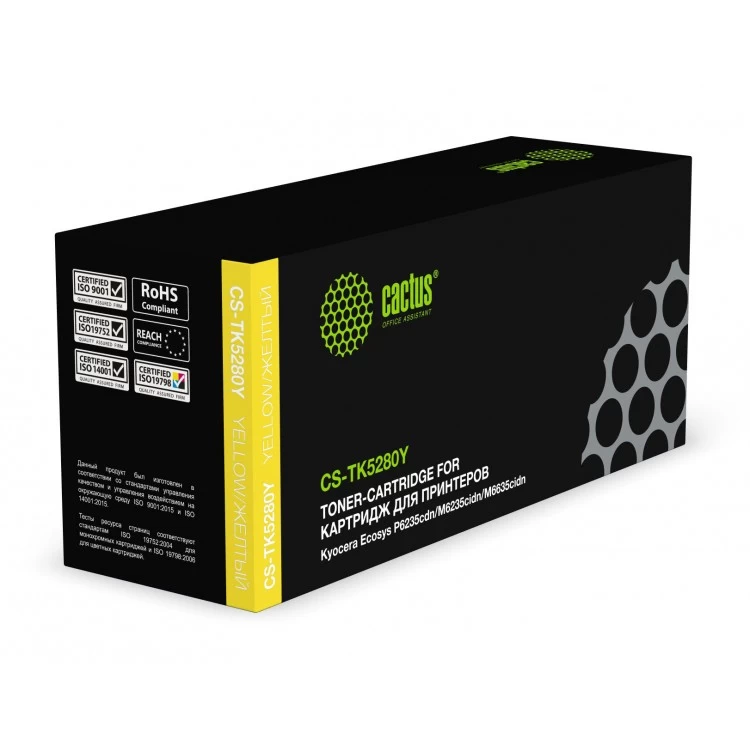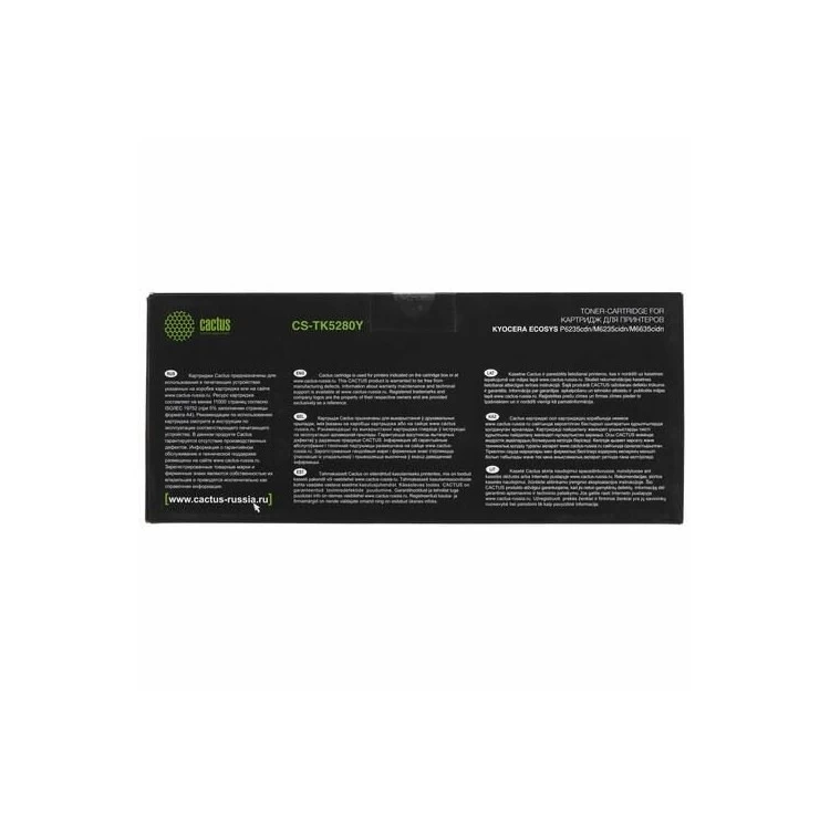 Название Картридж cactus CS-TK5280Y; Бренд cactus; Цвет картриджа желтый; Количество в упаковке 1 шт; Ресурс 11000 страниц; Цвет товара Комплект 5 шт; Тип картридж; Назначение для лазерной печати; Производитель совместимого устройства Cactus, Kyocera; Модель совместимого принтера Kyocera Ecosys M6235, Kyocera Ecosys M6635, Kyocera Ecosys P6235, Kyocera ECOSYS M6235cidn, Kyocera Ecosys M6235cidn, Kyocera Ecosys M6235cidn M6235, Kyocera Ecosys M6635cidn, Kyocera Ecosys P6235cdn, Kyocera Mita Ecosys M6235cidn, M6635cidn, M6635cidn M6635, P6235cdn, P6235cdn P6235; Особенности TK-5280Y; Совместимый есть; Комплектация Картридж,упаковка; Оригинальность расходника совместимый; Цветность Цветной; Цвет желтый;