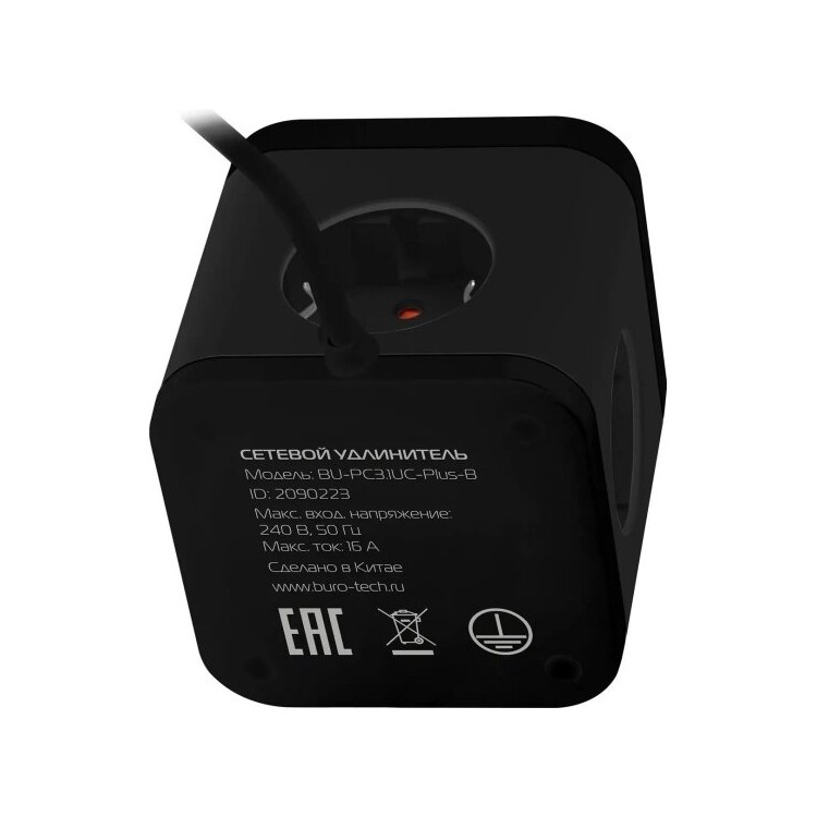 - Сетевой удлинитель Buro BU-PC3.1UС-Plus-B 3 розетки 1.5 м (черный)