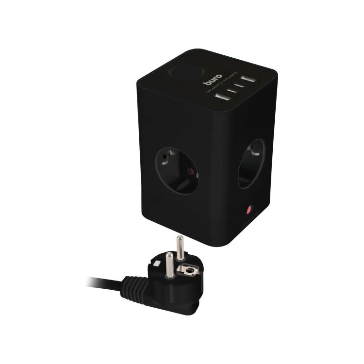 - Сетевой удлинитель Buro BU-PTE4.1UC-B 4 розетки 1.5 м (черный)