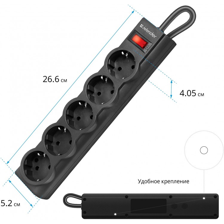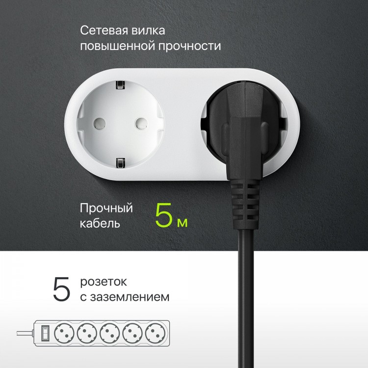 5 метров, 5 розеток, кнопка ? функцию выполняет, тьфу тьфу тьфу