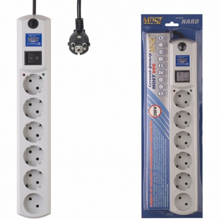 | Название | Сетевой фильтр MOST HV6, 6 розеток, 2м, белый |