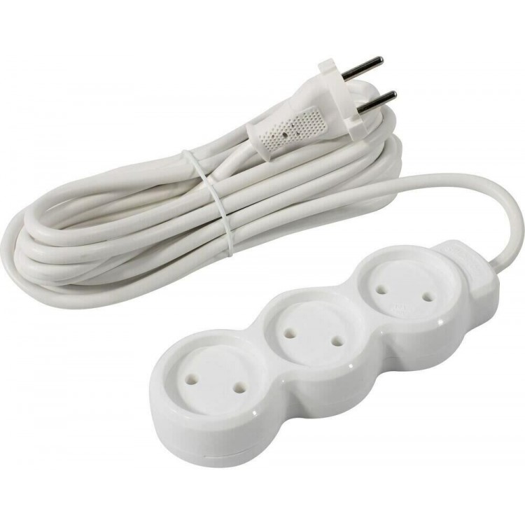 Тип удлинитель; Длина кабеля 5 м; Максимальная нагрузка 2200 Вт; Номинальная сила тока 10 А; Количество розеток 3; Тип провода ПВС; Число жил 2; Сечение провода 1 кв. мм; Степень защиты IP20; Длина 22.5; Ширина 11; Высота 5.2; Вес 0.411; Объём 0.001; Цвет белый;