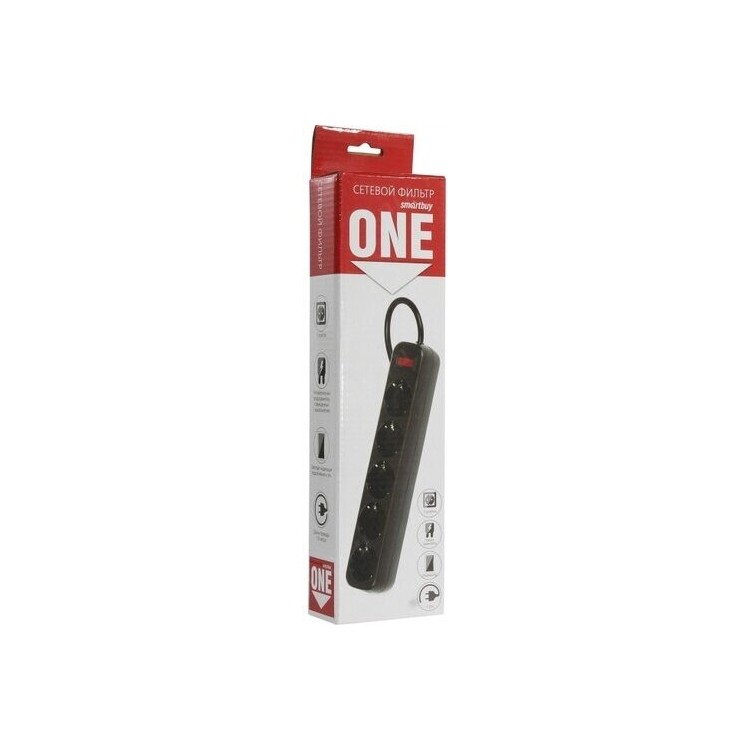 | Название | Сетевой фильтр Smartbuy ONE, 10А, 2 200 Вт, 5 розеток, 1,8 метра, черный (SBSP-18-K)/45 |