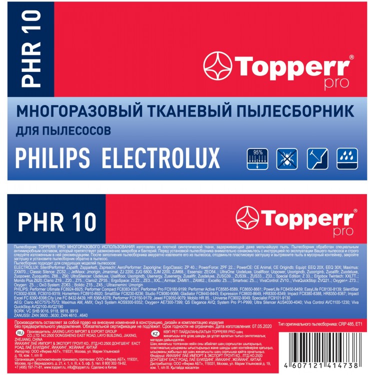 Название | Topperr Многоразовый пылесборник PHR10 |