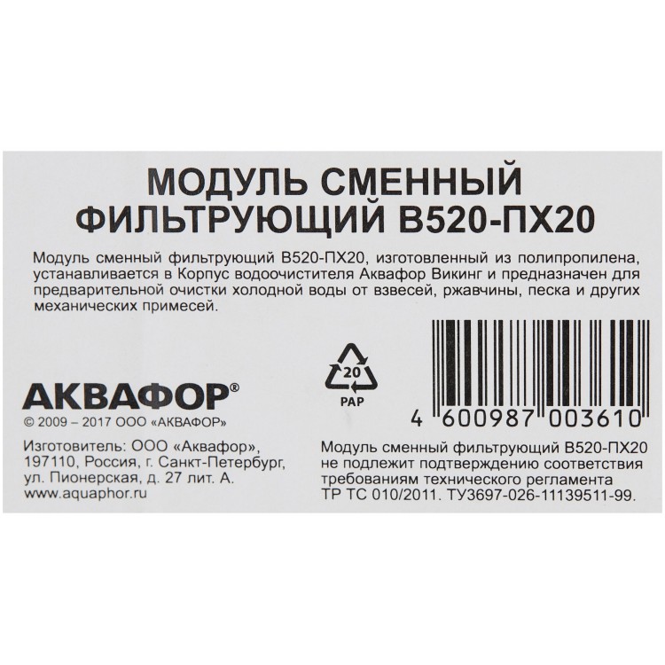 Бюджетный вариант картриджа для фильтра Аквафор Викинг на магистраль с холодной водой.