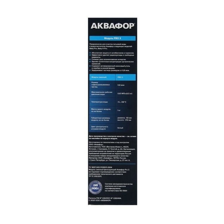 Название | Сменный модуль Аквафор Pro 3 (Baby Pro) для финишной очистки воды (0,8 мкм) |