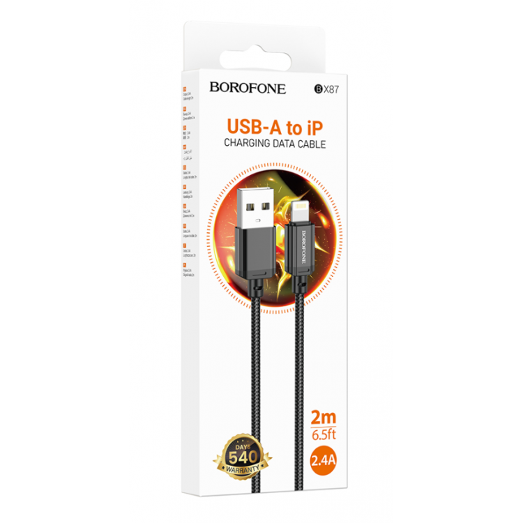 - Кабель Borofone BX87 USB - Lightning 2 м (черный)