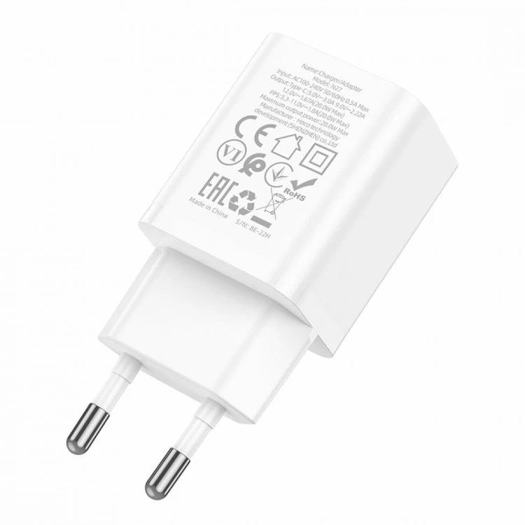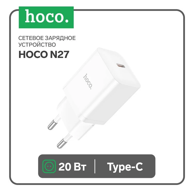 Название | Сетевое зарядное устройство HOCO N27 USB-C 20W "быстрая зарядка" белый |