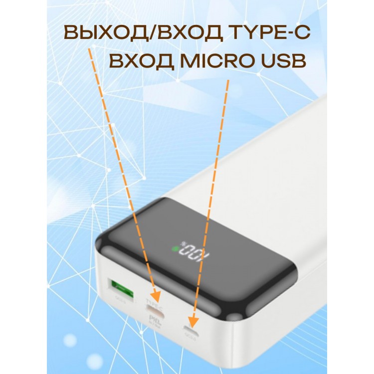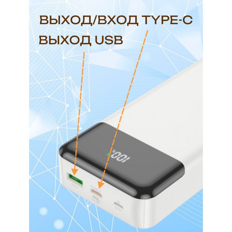 Hoco J102A Cool figure 20000mAh оснащён двумя выходными разъёмами USB Type-A и USB Type-C, что позволяет одновременно заряжать два устройства. Встроенный индикатор заряда всегда покажет уровень заряда аккумулятора.
