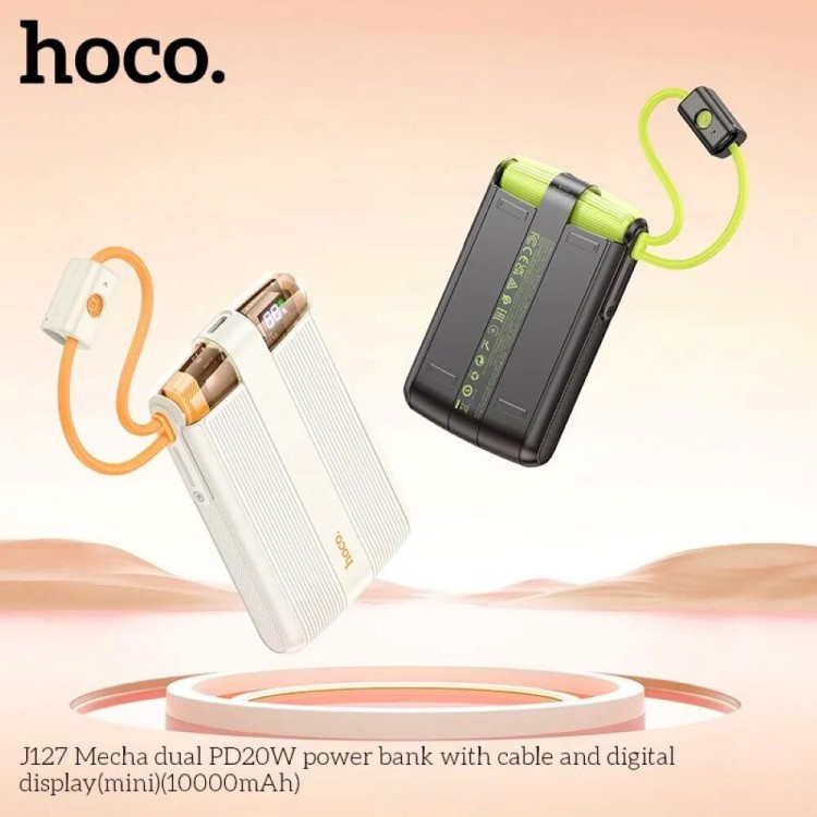 Портативный аккумулятор Hoco J127 Mecha dual PD20W With cable and Digital Display mini 10000mAh (белый)