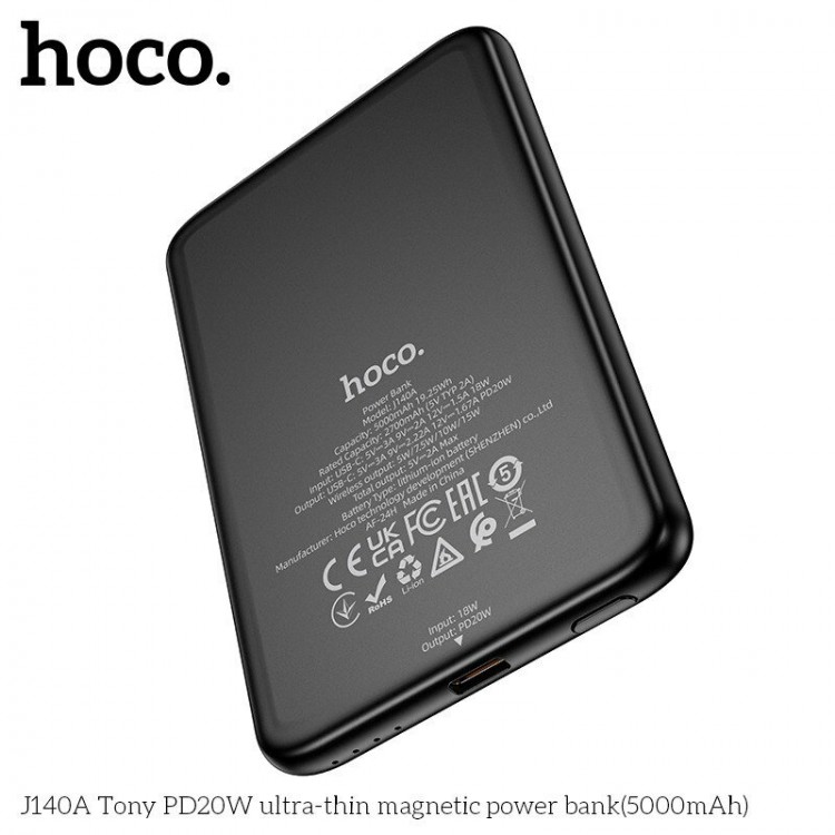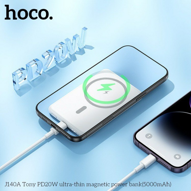 Ищете надёжный способ подзарядить свои устройства в любой ситуации? Тогда портативный аккумулятор Hoco J140A Tony PD20W ultra-thin magnetic 5000mAh — это то, что вам нужно!