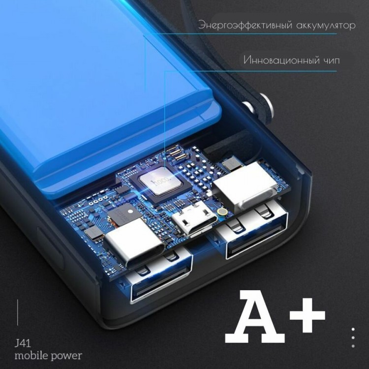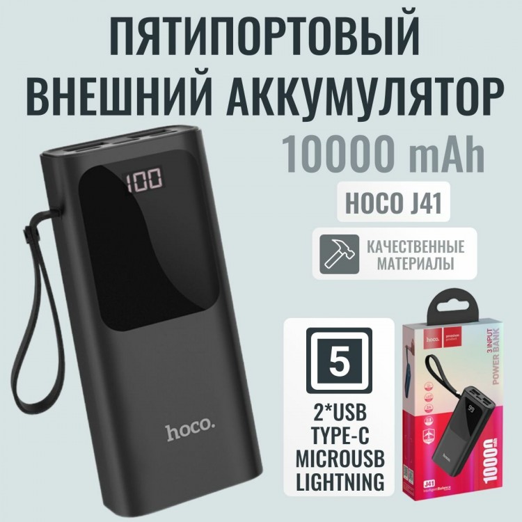 | Название | Внешний аккумулятор Hoco J41 10000mAh. 2*USB, Type-C, microUSB. Lightning, белый |