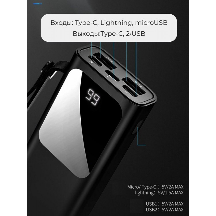 Благодаря ёмкости 37 Вт·ч и поддержке быстрой зарядки QC 3.0, этот аккумулятор станет незаменимым помощником в любой ситуации. Устройство оснащено USB Type-C и USB разъёмами, что обеспечивает удобство использования.