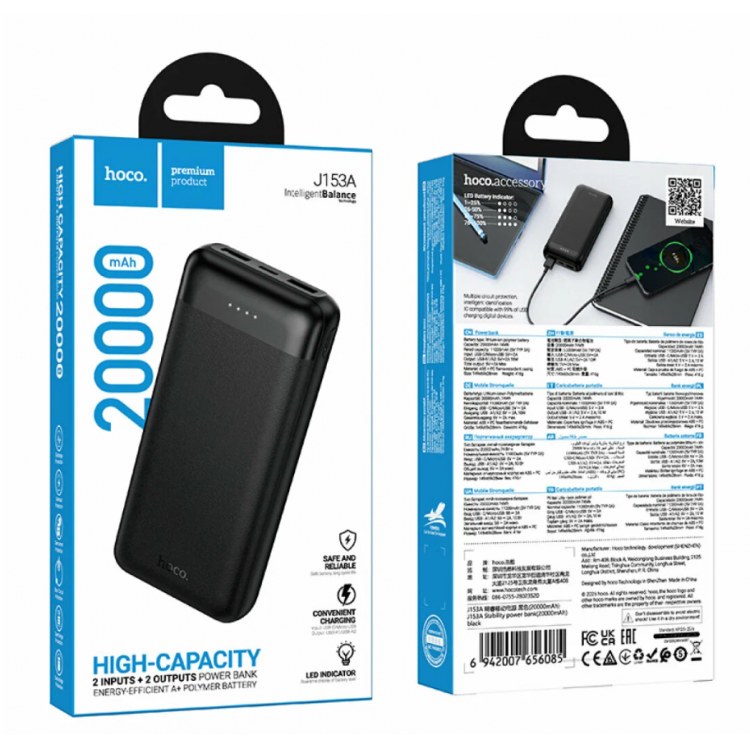 Ищете надёжный способ подзарядить свои устройства в любой ситуации? Тогда портативный аккумулятор HOCO J153A — это то, что вам нужно!