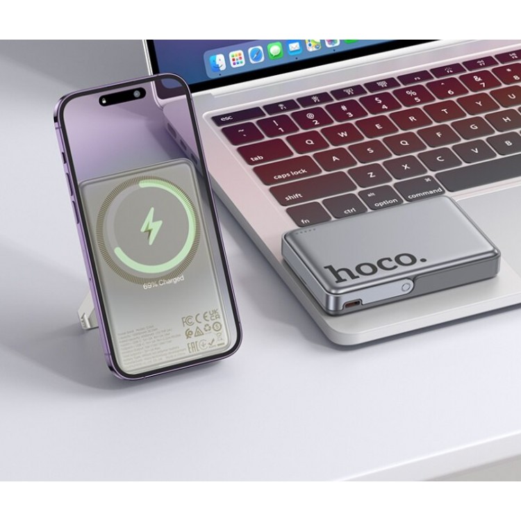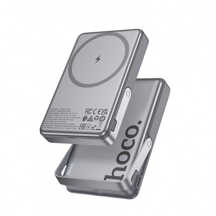 Портативный аккумулятор Hoco Q36A Sunlight PD20W magnetic suction+holder 10000mAh (серый металлик)