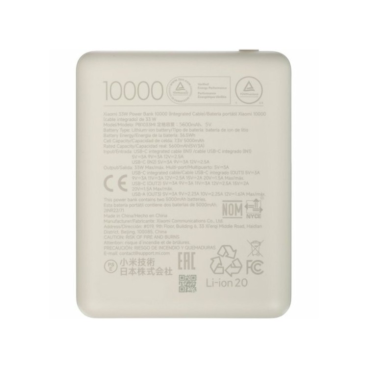 | Название | Внешний аккумулятор Xiaomi 33W Power Bank 10000mAh (Integrated Cable) Tan GL (BHR9333GL) |