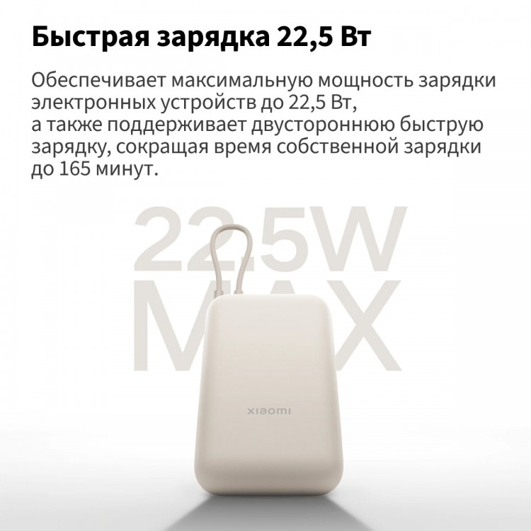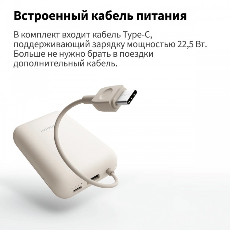 Портативный аккумулятор Xiaomi Power Bank 10000mAh (встроенный кабель) (BHR9072GL) (бежевый)