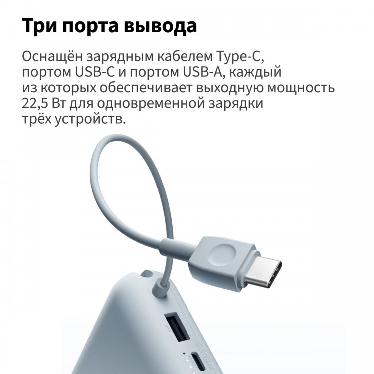 | Выходные разъемы | USB Type-A, USB Type-C, встроенный кабель USB Type-C |