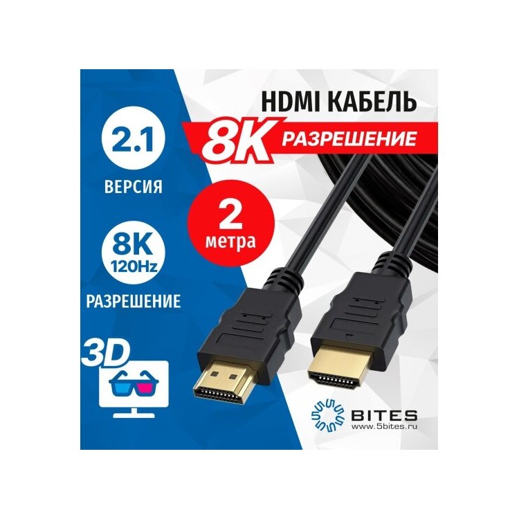 | Название | Кабель 5BITES HM-210-020 HDMI(M)-HDMI(M) V2.1, высокоскоростной, ethernet+3D, 2м. (HM-210-020) |