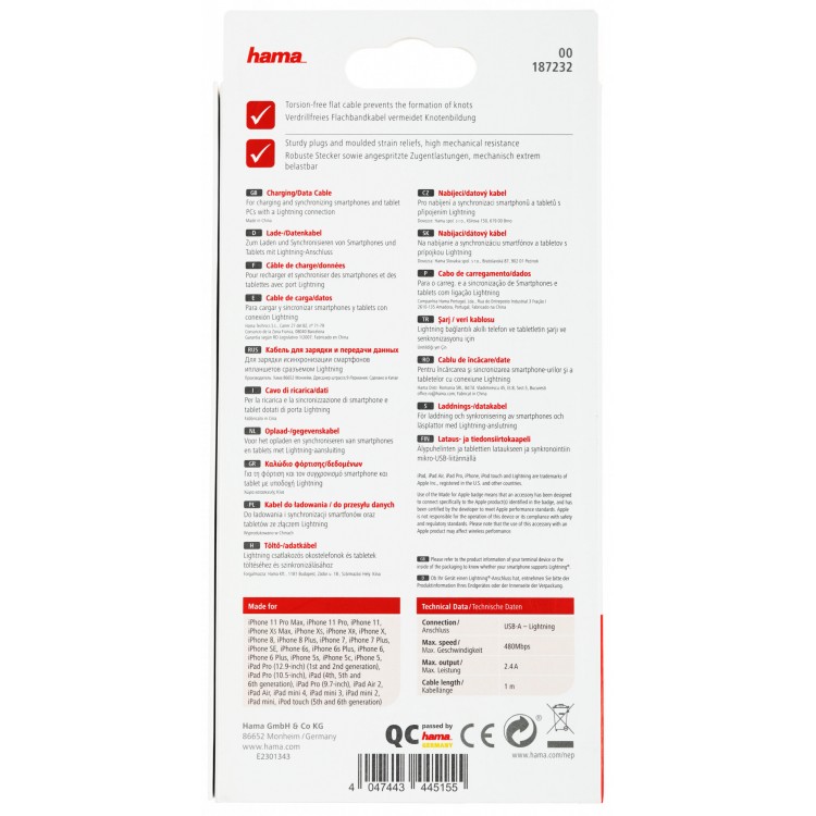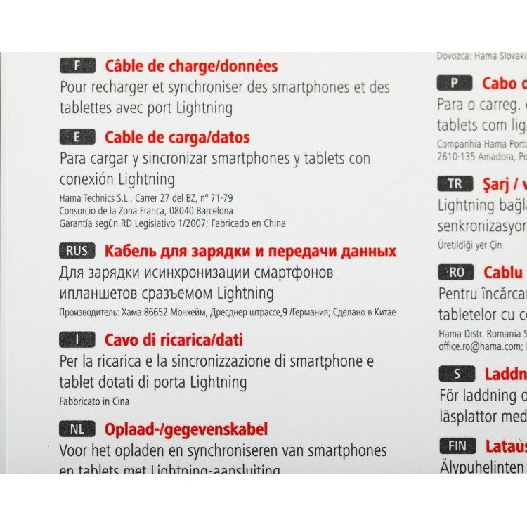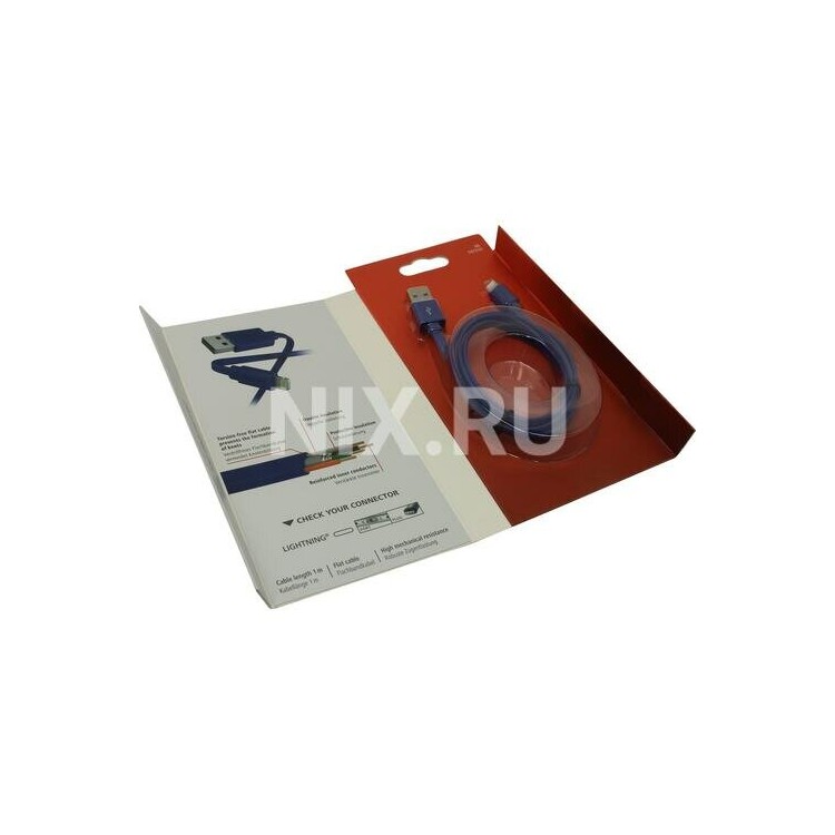 | Название | Кабель HAMA Lightning (m) - USB (m), 1м, MFI, плоский, синий [00187232] |