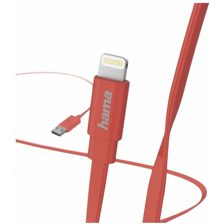 - Кабель Hama Flat 00173645 Lightning (m) USB A(m) 1.2 м (розовый)