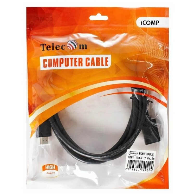 Название Кабель HDMI-HDMI 2M V2.0 TCG235MF-2M TELECOM; Назначение Видео; Бренд Telecom; Длина кабеля 2 м; Цвет товара Черный; Тип Удлинитель; #Назначение Видео HDMI; Все интерфейсы кабеля HDMI; Особенности Позолоченные контакты, передача 4K сигнала; Версия HDMI 2.0; Гарантийный срок 1 г; Цвет черный;