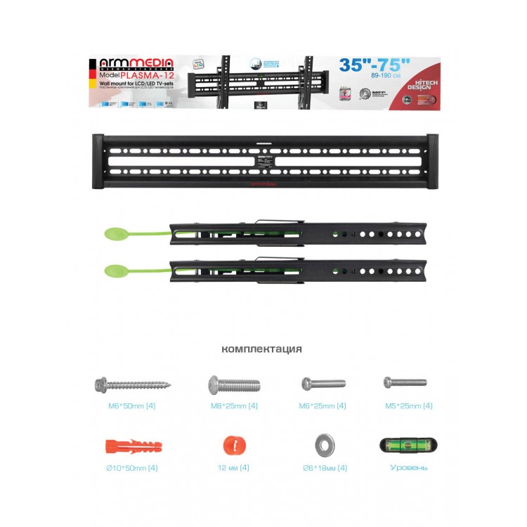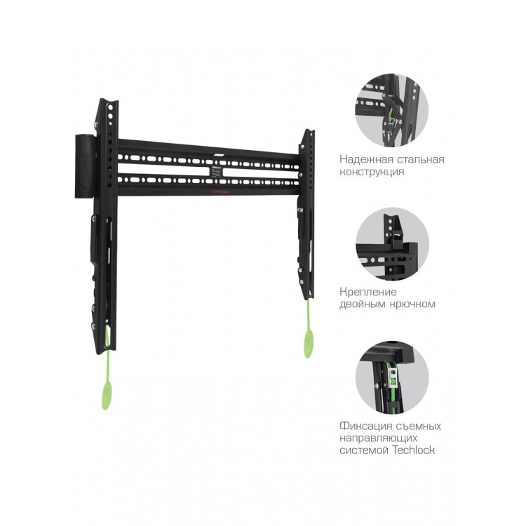 * Универсальность. Кронштейн подходит для телевизоров с диагональю от 35 до 75 дюймов и выдерживает нагрузку до 60 кг.