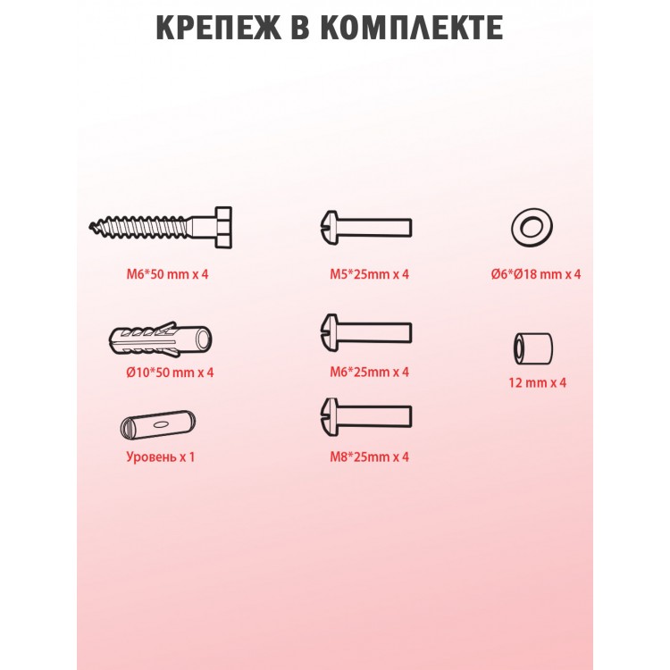 * Простота установки. В комплект входят все необходимые ключи и крепёж, а также навесной уровень и подробная инструкция на русском языке.