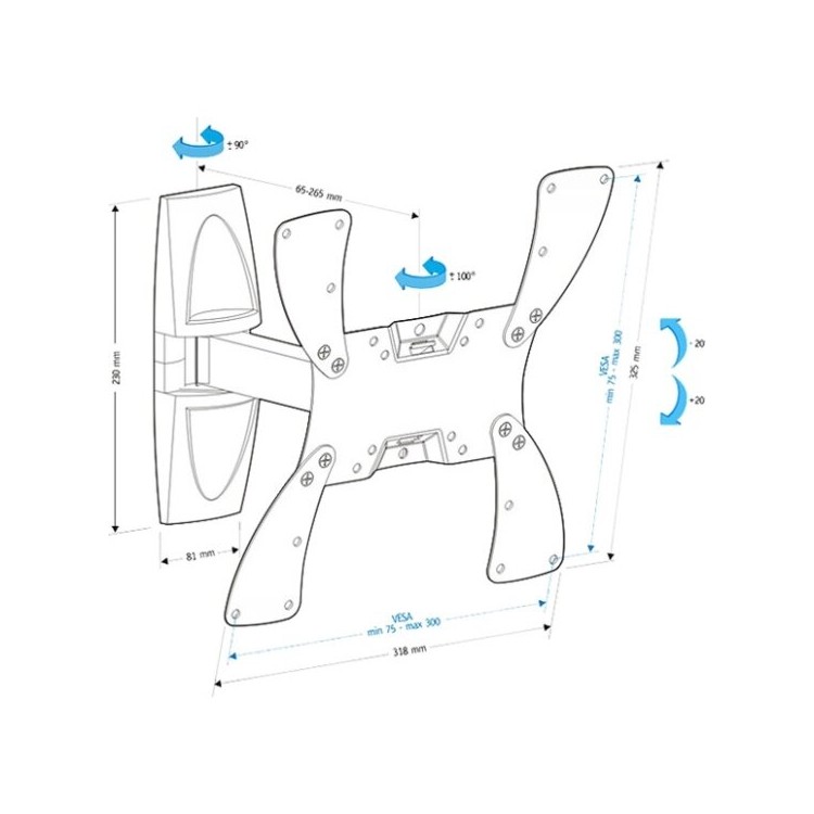 * а также возможность выбрать оптимальный отступ от стены или потолка от 65 до 265 мм, что позволит вам настроить оптимальное положение для просмотра.