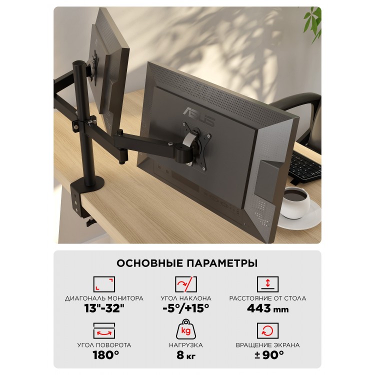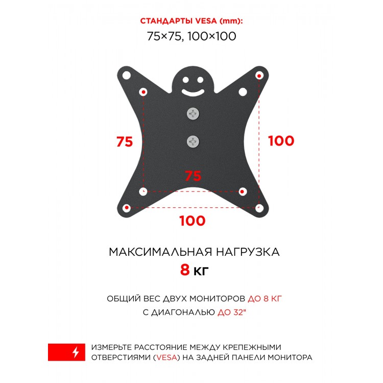 - Подходит для мониторов с диагональю от 13 до 32 дюймов.