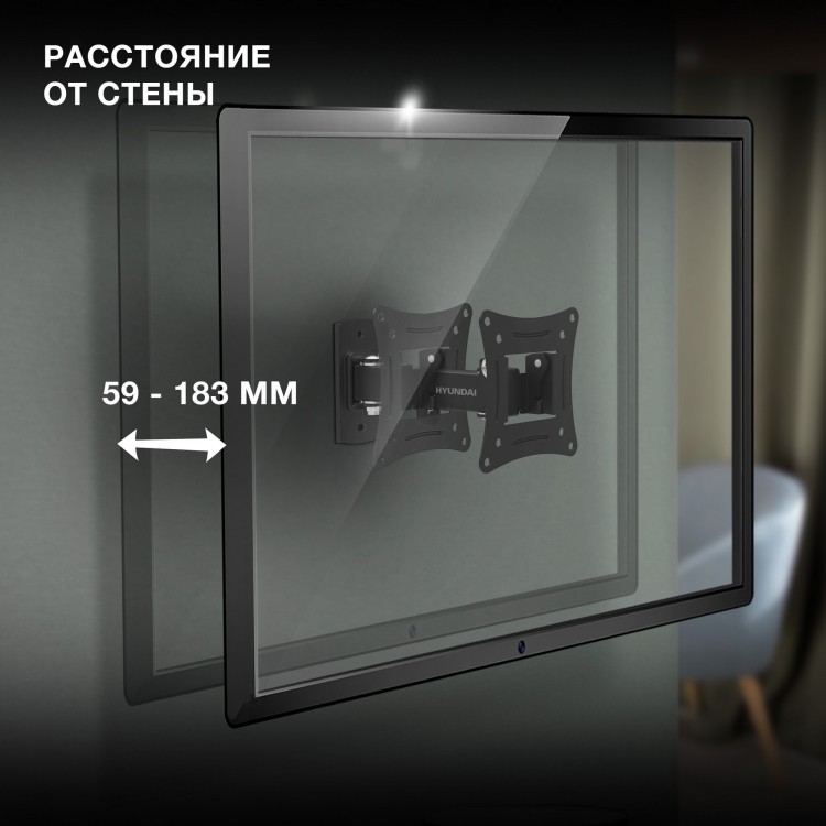 Угол наклона соответствует заявленному, а вот с поворотом явно погорячились. Расстояние 6 см. от стены не позволяет поворачивать телевизор даже с диагональю 23" на 45 градусов, максимум 15