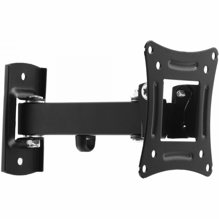 крепёжные отверстия идеально совпали с телевизором Samsung 22". С виду хлипковат, но для телевизора массой 2-3 кг хватает за глаза.