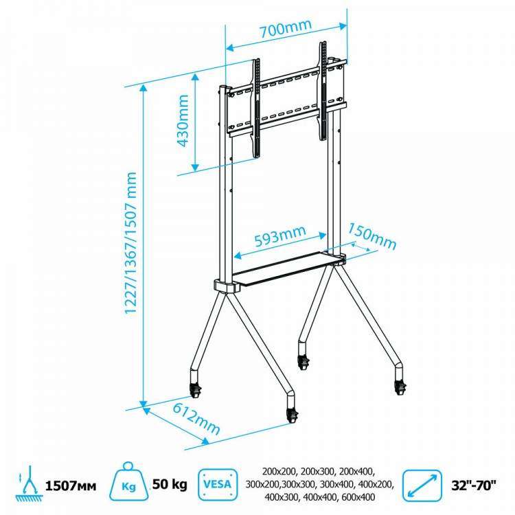 | Дополнительная информация | Высота: 1227/1367/1507 мм |