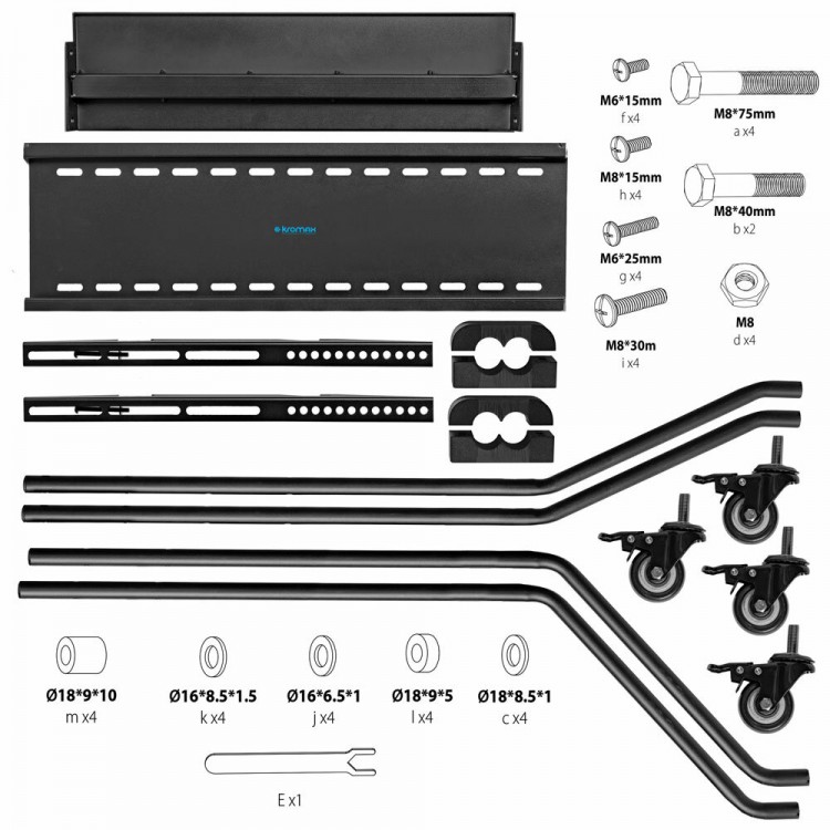 | Комплектация | Мобильная стойка для телевизора, комплект ключей и крепежа для установки ТВ, навесной уровень, подробная инструкция на русском языке |