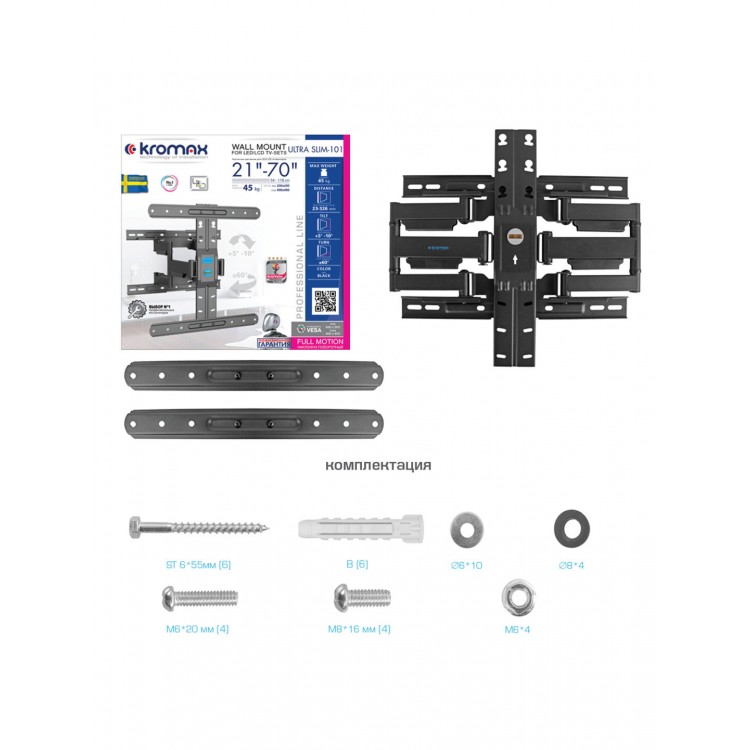| Название | Кронштейн для телевизора Kromax Ultra Slim-101 black, 45 килограмм |