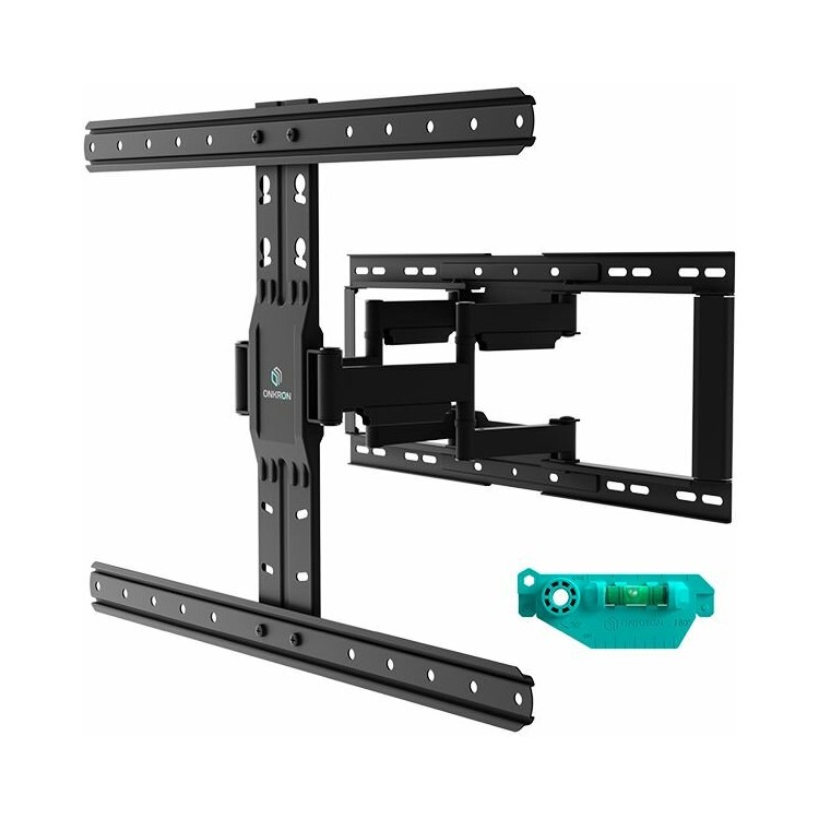 Очень крепкий и надежный кронштейн, выдержит любой телевизор, в комплектации есть все необходимое для установки: инструкция, дюбеля, пузырьковый уровень и шаблон для проделывания отверстий в стене, который снизу имеет линию загиба для сбора бетонной пыли. У самого кронштейна большой диапазон регулировок и степеней свободы
