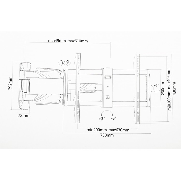 3. Регулируемые параметры. Вы можете настроить кронштейн под любые потребности, регулируя наклон, наклон, поворот и расстояние от стены или потолка.