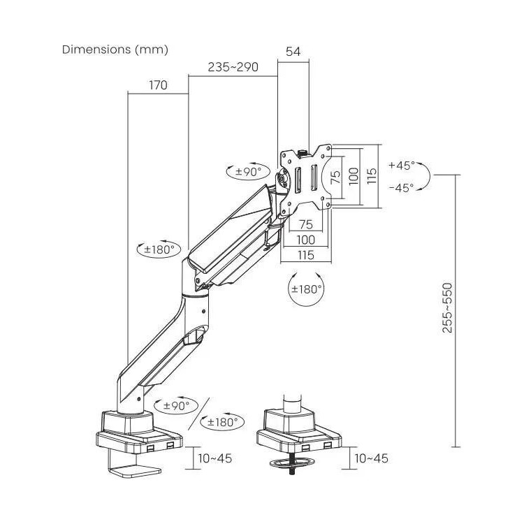 | Особенности | газлифт, кабель-канал, струбцина, Настольный кронштейн для монитора с системой газ-лифт |