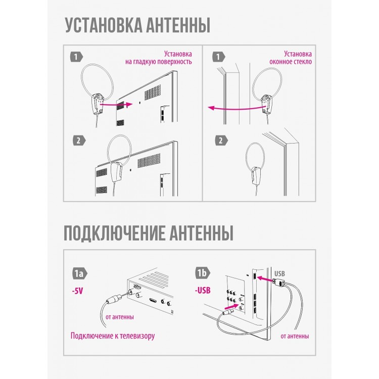 Не соответствует фото в карточке товара. кабель не антенный. Из-за этого большие помехи. Купила дня второго телевизора, на первом аналогичная антенна ловила отлично.