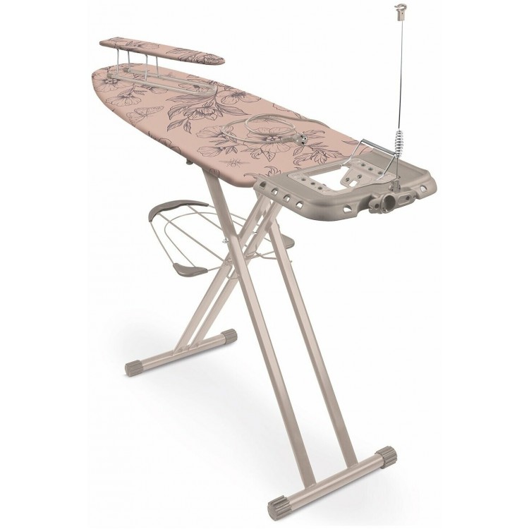 Наша гладильная доска имеет прочную металлическую конструкцию и столешницу с перфорацией, что обеспечивает отличную циркуляцию воздуха и помогает быстрее высушить бельё. В комплект входят встроенная розетка для утюга, подставка для парогенератора, полка для белья, гладильный рукав, кронштейн для провода и подставка для утюга.