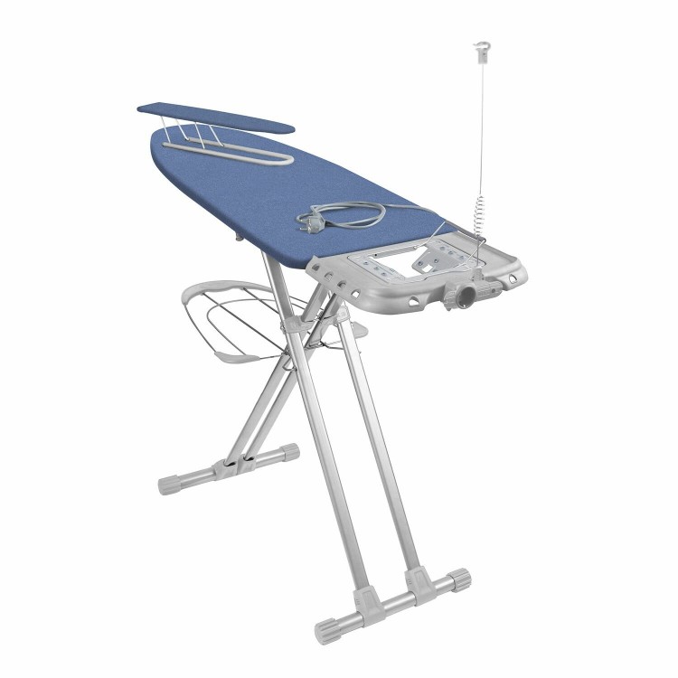 | Особенности | Регулировка высоты, встроенная розетка для утюга, гладильный рукав, подставка для парогенератора |
