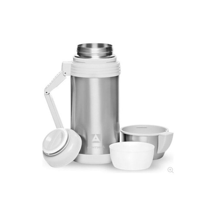 Отличный термос. С большим отделением под горячее. Держит тепло хорошо