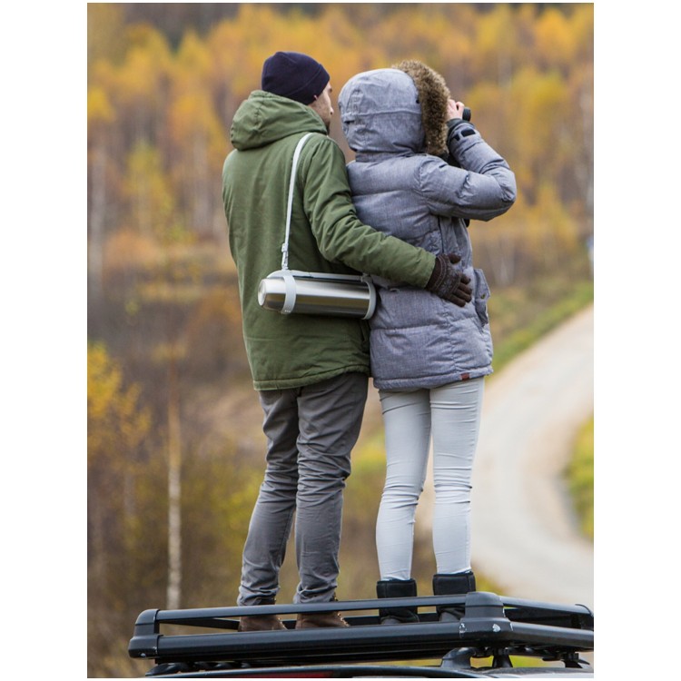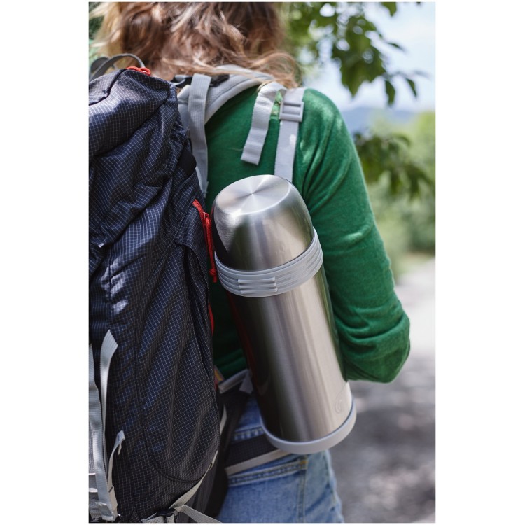 Удобен в транспортировке. Термос оснащён складной ручкой и съёмным ремнём для переноски на плече. Компактный размер и удобная форма делают его отличным выбором для путешествий, походов, пикников или занятий спортом.