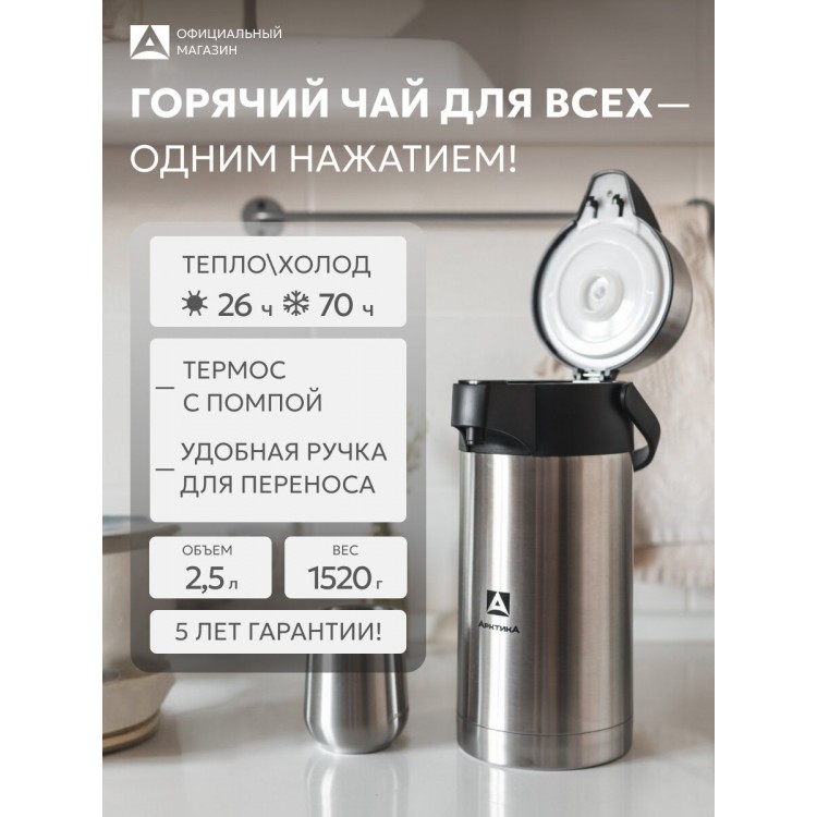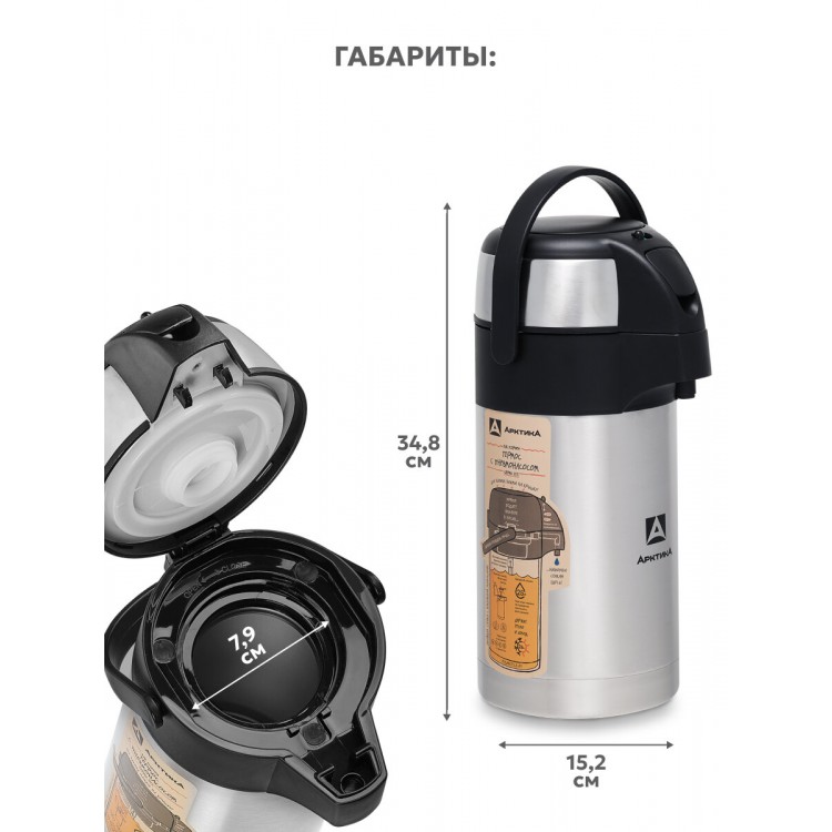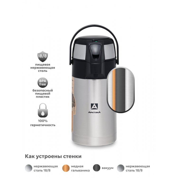 | Название | Термос с помпой для кофе и чая 2.5 л/Арктика 501 сталь/большой с ручкой |