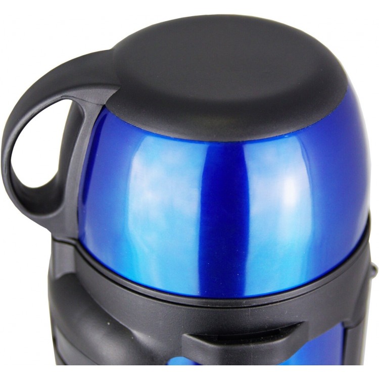 Вакуумный термос оснащён удобной кнопкой-клапаном, крышкой-чашкой, нескользящим дном, ремнём для переноски и ручкой на корпусе. С ручкой для переноса его удобно носить в руках.