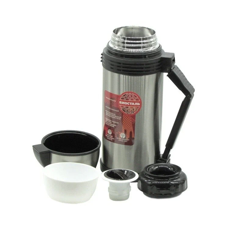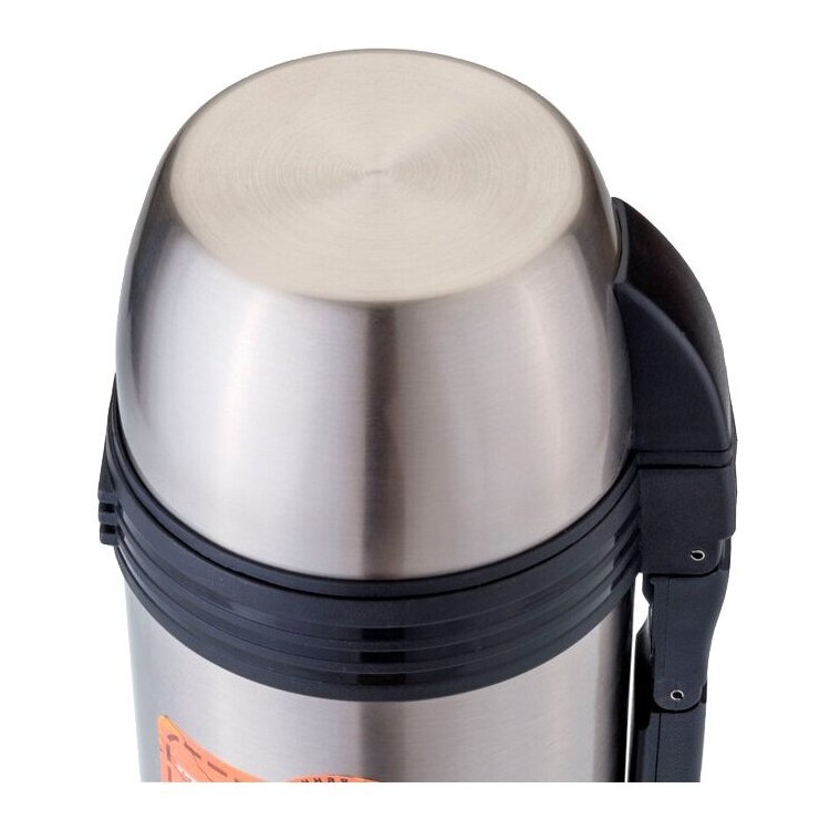 Великолепный термос! Хорошая комплектация: крышка с чашечкой, далее - плотный клапан, далее ещё крышка (для полного слива оставшейся жидкости и удобной мойки термоса). Отличная и удобная складная ручка + ещё и ремень для носки - супер! Самое главное - тепло держит ОТЛИЧНО!