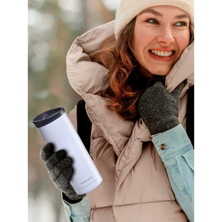 Отличная термокружка, хорошо держит температуру, стильная, красивая. Отлично встает в подстаканник в машине.