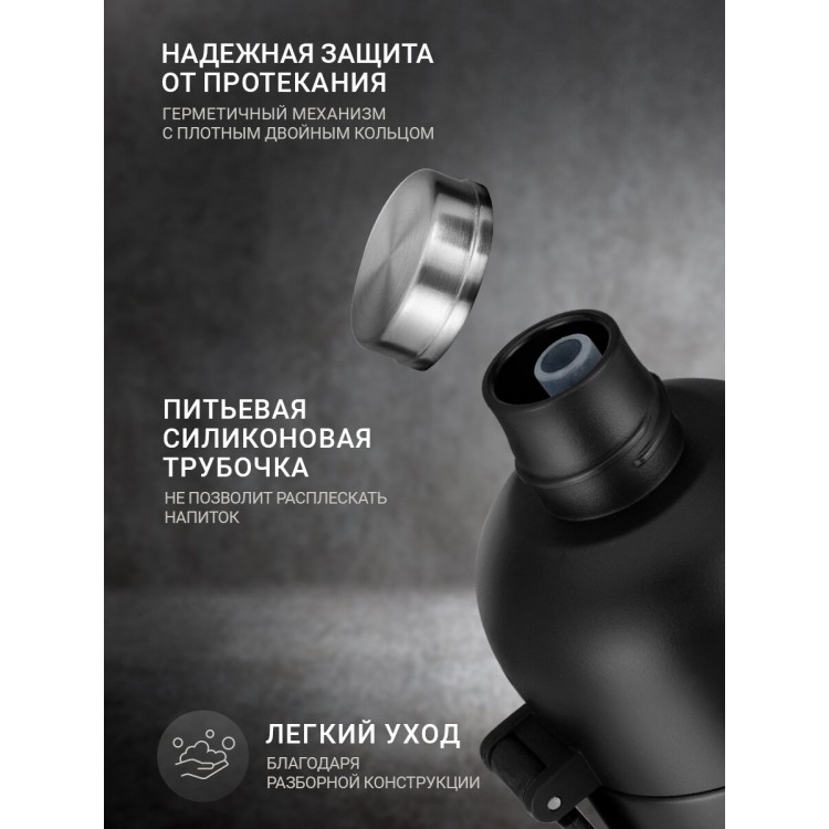 * Материал корпуса и колбы: сталь и нержавеющая сталь соответственно. Это обеспечивает долговечность и сохранение температуры напитков до 12 часов.