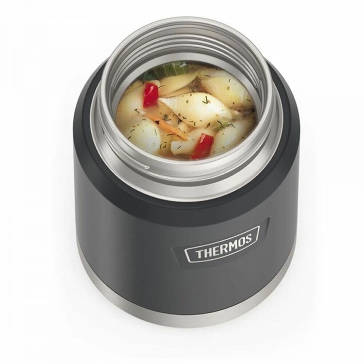 отлично держит температуру, очень удобный, есть ложка которую никогда не забудешь дома, есть отдельные ёмкость под термосом для всяких мелочей типа зубочистки и так далее. качество термоса очень сильно радует