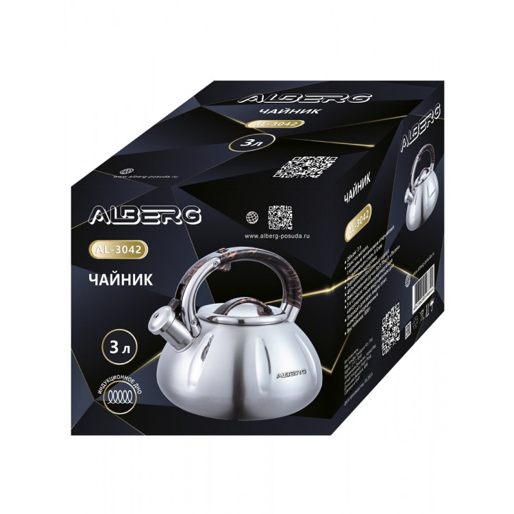| Название | Чайник для плиты со свистком ALBERG AL-3042 3 литра, зеркальная полировка |